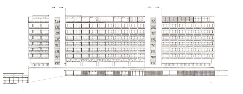 Por otra parte, no estaría de más recordar que Klaus Heufer, formado como arquitecto en la Universidad Tecnológica de Braunschweig (la más antigua universidad tecnológica de Alemania), de donde egresa en 1950 bajo la tutoría del profesor Friedrich Wilhelm Krämer, viene a Venezuela en 1952 para incorporarse junto a su compañero de estudios Friedrich Beckhoff a la oficina Malaussena & Silveira, donde desde hacía ya un año trabajaba Klaus Peter Jebens también condiscípulo de ellos. Casi de inmediato comienza su participación en los proyectos para el Círculo de las Fuerzas Armadas y los hoteles Guaicamacuto y Maracay de la CONAHOTU, apareciendo la utilización del “muro cortina” de forma clara tanto en este último como en el Salón Venezuela del club militar lo que le permite a la firma, junto a otros atributos propios de un enfoque diferente desde lo proyectual, dar un giro hacia el uso de códigos modernos que se sumarán a los de corte académico que Luis Malaussena manejaba con maestría.