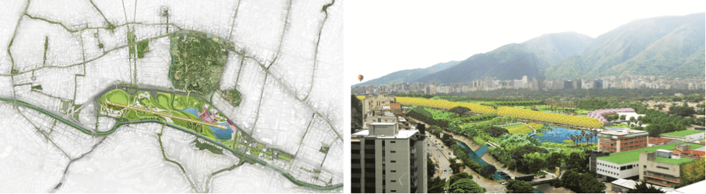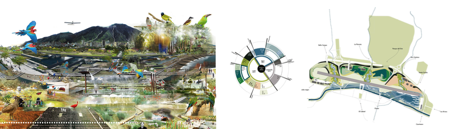 7. Dos imágenes de la Propuesta ganadora del Concurso público de ideas para transformar la Base Aérea de La Carlota en Parque Metropolitano. Manuel Delgado Arteaga y Jorge Pérez Jaramillo