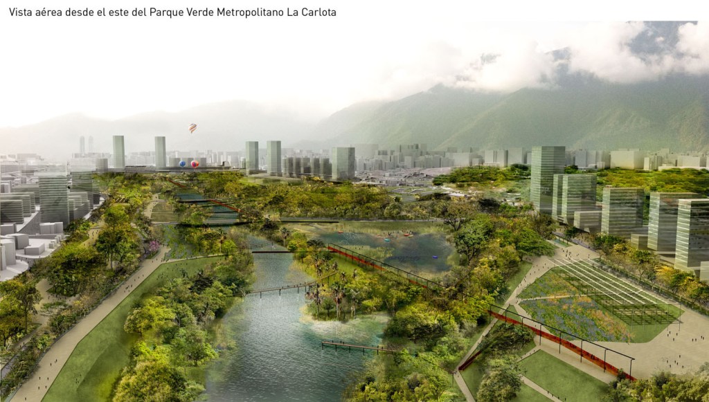 Cabe recordar que sobre La Carlota existe una larga lista de iniciativas que para abreviar, ya que fueron desglosadas por nosotros en el artículo señalado, en lo que se refiere solamente a este siglo remiten en primer lugar al anuncio hecho en 2001 por Hugo Chávez de “regalarle” a Caracas los terrenos de la base aérea, entusiasmado por unos dibujos rápidos provenientes de un cuaderno que Fruto Vivas tenía archivados, que muestran cómo se vería el espacio ocupado por lagunas y cultivos donde habría un helipuerto y la pista se mantenía para emergencias. A aquella iniciativa seguirá la tentación surgida en 2006 por construir en La Carlota desarrollos de vivienda por parte del entonces Alcalde del Municipio Chacao, Leopoldo López, para lo cual se apoya en la propuesta elaborada por el arquitecto Alberto Manrique. Seguirán luego como otros intentos: la idea, muerta al nacer en 2007, de levantar un Parque Científico Tecnológico que incluía la construcción de 620 apartamentos y que sin embargo derivó en la instalación en 2010 de una fábrica de ensamblaje de celulares; la exposición en 2007 dentro de los espacios de la FAU UCV de los resultados de una experiencia de postgrado impulsada por el Instituto de Urbanismo titulada “Propuestas para La Carlota” que dio origen a un interesante artículo de Oscar Tenreiro titulado “Un resumen de reflexiones sobre La Carlota” (Entre lo cierto y lo verdadero, 17/10/2007); la esperada decisión por parte de Hugo Chávez en 2008 de eliminar el aeropuerto (que sí se da) y trasladar la sede de la Fuerza Aérea a Maracay (lo cual no ocurre); las amenazas siempre latentes de desarrollar La Carlota por partes y de construir viviendas; la contratación de un Plan Maestro en 2008 a una empresa de la Facultad de Arquitectura y Urbanismo de la UCV; para “finalizar” con una nueva decisión de Chávez en julio de 2011 de convertir La Carlota en un parque (Parque Bolívar) con la incorporación en 2012 de un circuito de Fórmula 1 a ser inaugurado en 2016, que originó el ya mencionado Plan Maestro elaborado por la Oficina Presidencial de Planes y Proyectos Especiales (OPPPE).