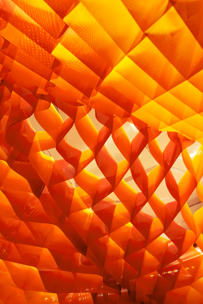 El pabellón diseñado por Tadao Ando contará con una «amplia cubierta, compuesta por un disco de aluminio de 14,4 metros que descansa sobre un pilar central de concreto». Dos plazas distintas proporcionan acceso al interior, donde las paredes de concreto de diferentes longitudes encierran parcialmente el espacio, evocando la serenidad de un jardín japonés tradicional con muros. Las paredes norte y sur del pabellón cuentan con una larga abertura horizontal que abarca la longitud de la estructura y enmarca vistas del centro de Melbourne y los parques, forjando una conexión entre el interior y la exuberante vegetación de los Jardines Queen Victoria. La simetría y las formas geométricas del pabellón se destacan aún más por su disposición interna, que comprende un área pavimentada y una piscina reflectante, esta última refleja la cubierta, el cielo, el paisaje urbano y la naturaleza circundante.