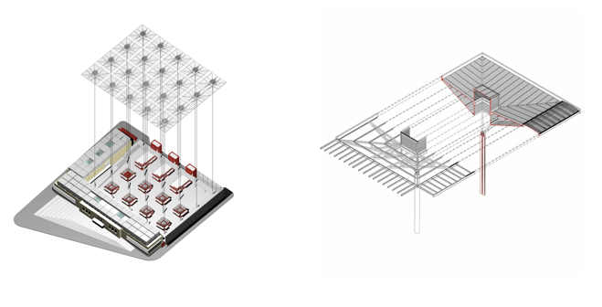 El nivel uno prevé la existencia de una feria de comida, áreas de oficina y guardería.