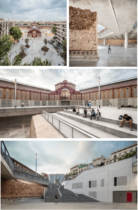 El estudio catalán de Pere Joan Ravetllat y Carme Ribas ha remodelado este mercado histórico de Barcelona, construido en 1882 según proyecto del arquitecto Antoni Rovira i Trias y del ingeniero José M. Cornet y Mas. Reabierto después de casi una década de obras, el conjunto está organizado en forma de cruz griega con un octógono central cubierto con una cúpula de mayor altura. Alrededor de este se disponen cuatro nuevos espacios públicos triangulares para albergar actividades complementarias y construcciones destinadas a la venta ambulante, algunas de ellas con marquesinas retráctiles.