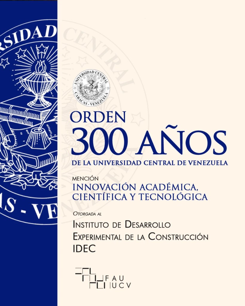 ORDEN 300 AÑOS de la UNIVERSIDAD CENTRAL DE VENEZUELA Mención INNOVACIÓN ACADÉMICA, CIENTIFICA Y TECNOLÓGICA para el Instituto de Desarrollo Experimental de la Construcción (IDEC FAU UCV)