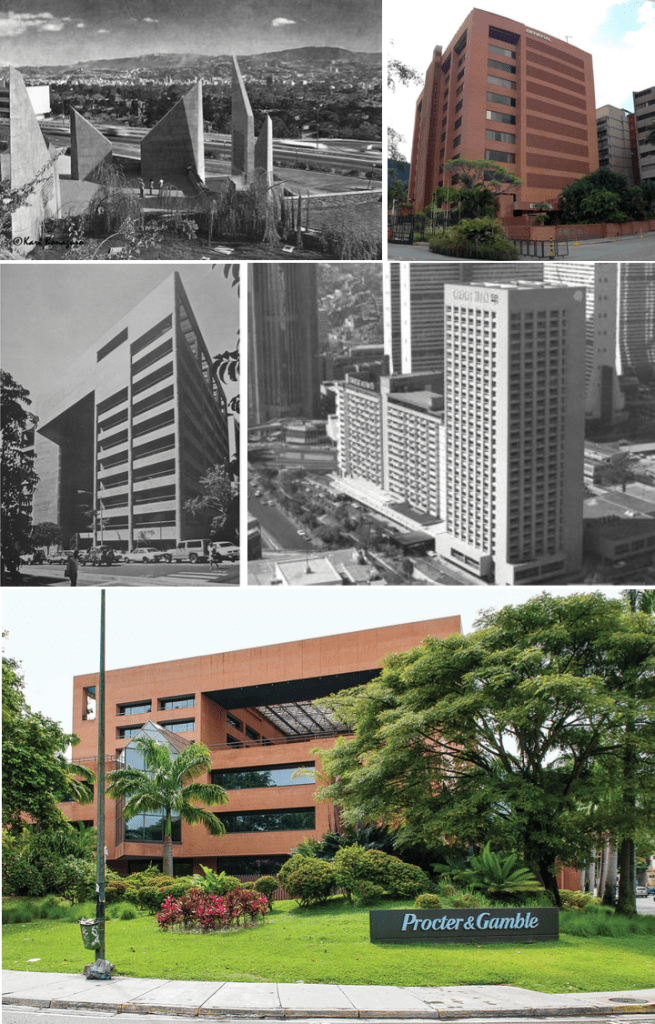 3. Colección Crono Arquitectura Venezuela; https://construidoencaracas.wordpress.com/2013/07/21/torre-general-de-seguros/; Colección Fundación Arquitectura y Ciudad; http://guiaccs.com/obras/edificio-procter-gamble/