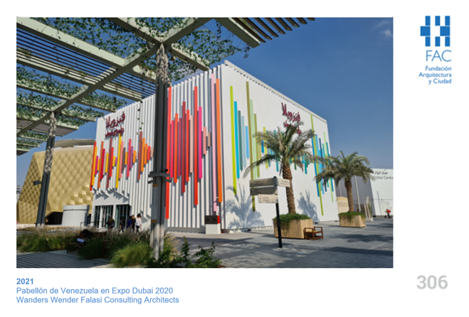 Venezuela, siguiendo una larga tradición de participación en estos eventos, estuvo presente en el sector o distrito de la Oportunidad. Volviendo a la que se consideraba una ya superada costumbre de no contar con un arquitecto propio, el país dejó en manos de los organizadores del evento el diseño de su pabellón, responsabilidad que caería en la firma local Wanders Werner Falasi Consulting Architects (WWFCA), fundada en 2008 dirigida por Hannes Werner y Mansoor Al Falasi, a la cual también se le encargó el pabellón de Ucrania y tuvo participación indirecta en la construcción del pabellón temático de la Oportunidad (AGi Architects) y de los pabellones de España (Amann-Canovas-Maruri), Baréin (Christian Kerez), Colombia (Pacheco Arquitectura), Egipto (Hazem Hamada), Palestina (Al Nasher) y Letonia (DJA).