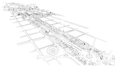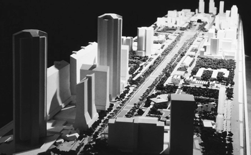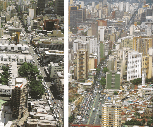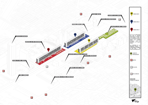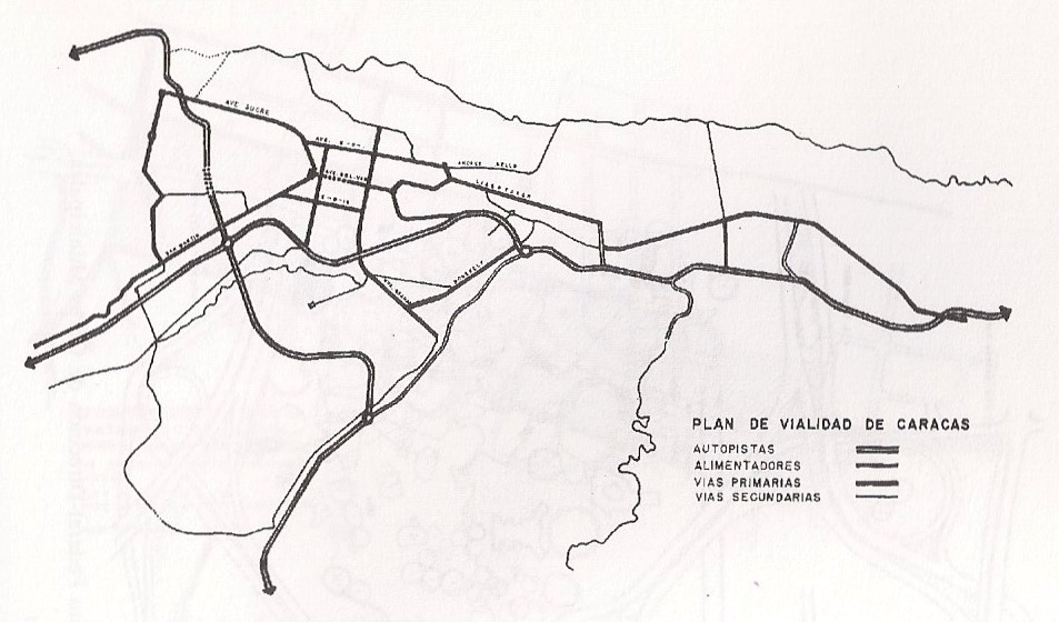 Cabe acotar que del primero de los puntos generales señalados por la Comisión se trasluce que fue Guinand en su propuesta quien prefiguró el futuro trazado de la avenida Bolívar por el centro de la cuadra entre la Este 6 y la Este 8, ateniéndose a lo señalado por el Plan Director de Calles y Avenidas derivado del Plan Rotival aprobado por el Concejo Municipal avalado a su vez por la misma Comisión. Villanueva, quien sólo proponía ampliar la Este-Oeste 8 que pasa por frente al Teatro Municipal como eje principal, contraviniendo el Plan Director, tuvo por lo tanto que ajustar su propuesta inicial a aquel requisito lo que le permitió redefinir la disposición de los bloques 2 y 3 y alterar la altura del bloque 1 como remate del futuro eje vial.