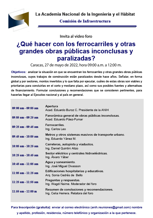 La Comisión de Infraestructura de la Academia Nacional de la Ingeniería y el Hábitat invita al video-foro