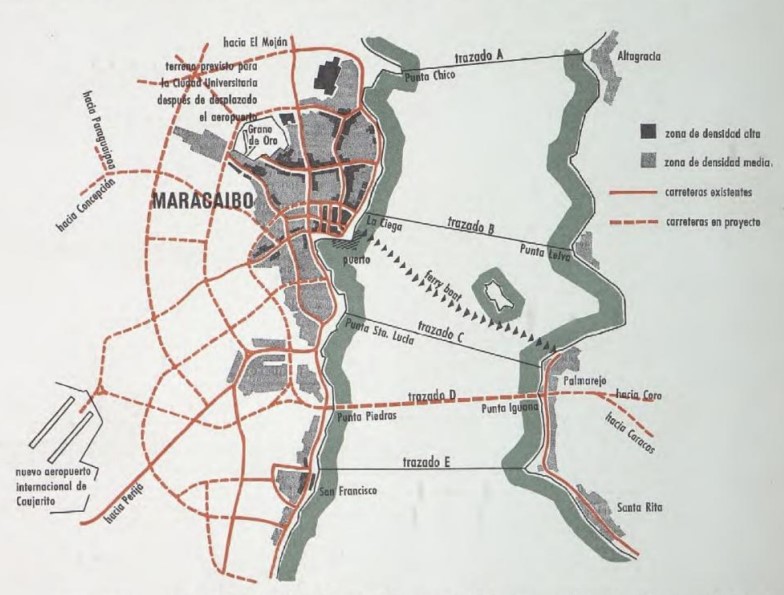 En todo caso, partamos por recordar que la localización de la ciudad de Maracaibo, próxima a la conexión entre el Golfo de Venezuela y el lago en cuyo borde se ubica, si bien siempre facilitó su comunicación con el Caribe por vía marítima no era del todo expedita con el resto del país por vía terrestre. De hecho, cuando se desarrolló definitivamente el tránsito automotor como sistema principal de transporte a partir de la aparición de petróleo, la llegada de vehículos desde la costa oriental del lago a la capital zuliana se realizaba a través de un ferryboat hasta bien entrada la década de los años 1950. No olvidemos tampoco que para entonces el Lago de Maracaibo se había convertido en el principal foco de explotación petrolera venezolana (alcanzaba el 70% de la producción nacional), ello había generado un fuerte impacto en lo ambiental, lo demográfico y lo económico para toda la zona e incorporado el tránsito por sus aguas de enormes cargueros que transportaban el crudo rumbo al mar y el resto del mundo.