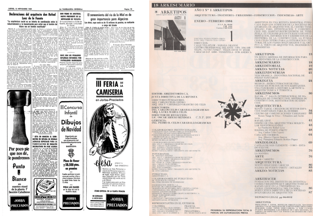 Leoz, quien fue postulado en 1968 para el Premio Nobel de la Paz por la Sociedad Bolivariana de Arquitectos y reconocido a través de la creación del Instituto de Investigaciones Urbanísticas y Arquitectónicas Rafael Leoz en la Universidad Nacional Experimental del Táchira en 1987, visitó Venezuela en un par de ocasiones en 1963 y en 1967 gracias a las gestiones realizadas primero por Antonio Granados Valdés (Director de Extensión Cultural de la FAU UCV y de la revista PUNTO) y luego por la Sociedad Bolivariana de Arquitectos lo que nos llevó a realizar una extensa nota publicada en el Contacto FAC nº 171 del 19 de abril de 2020 dentro de la serie “Visitas memorables” (https://fundaayc.com/2020/04/19/visitas-memorables-10/) que ha servido de apoyo a la que presentamos hoy.