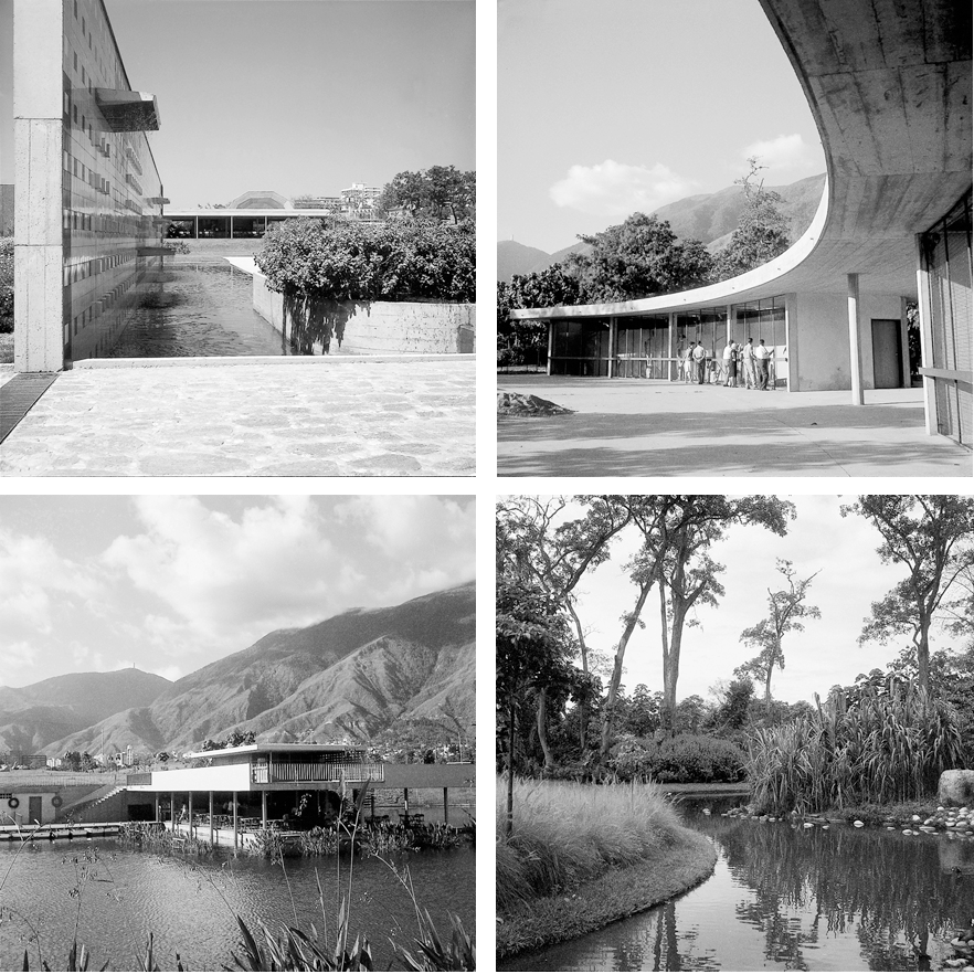 4. Parque del Este, Caracas, 1961. Arriba izquierda: Patio de los Azuelejos. Arriba derecha: Aviario. Abajo izquierda: Restaurant del gran lago. Abajo derecha: Lago de las corocoras. Fotos tomadas en 1965.