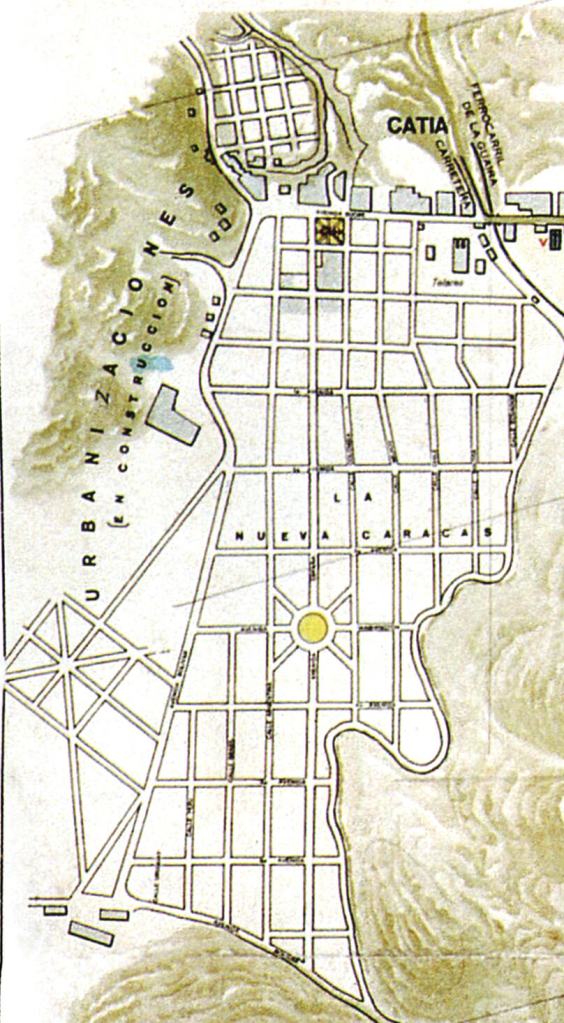 El análisis del documento, realizado con minuciosidad por Iván González Viso y Federico Vegas en el texto introductorio “Caracas a través de sus planos” de Caracas del valle al mar. Guía de arquitectura y paisaje (2015), hace particular mención de la aparición al extremo noroeste de la ciudad, en el sector de Catia, de una urbanización “en construcción” que llevaba el nombre de “Nueva Caracas”. Al respecto señalan: “Su extensión equivale a 80 de las cuadras del centro tradicional. Por su escala y novedad es, proporcionalmente, la intervención más importante en la historia de Caracas. Viene a constituir un modelo de ciudad satélite, pues se encontraba separada del casco central por el largo brazo que partía hacia la Guaira y destinada para la clase obrera, una especificidad que difiere de la multifuncionalidad de la trama colonial. Comenzaban a manifestarse criterios de zonificación y desintegración. Nueva Caracas será la entrada al gran valle desde el mar y tendrá la multiplicidad y la vitalidad de un puerto enclavado en la montaña. Allí encontraron sitio los emigrantes que llegaron antes y después de la guerra”.