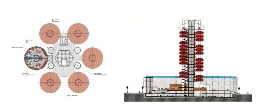 Por su parte, Fruto, menos riguroso que Hernández, vio siempre la posibilidad de experimentar en torno a las ideas que manejaba, aprovechando las oportunidades que se le presentaban en encargos que con el tiempo fueron surgiendo. Es así como planteará el “Sistema Caroní” (1964) concebido y puesto en escena para el proyecto del hotel para Ciudad Guayana que reseñáramos por estas páginas la semana anterior (https://fundaayc.com/2024/11/03/algo-mas-sobre-la-postal-no-427/), o la propuesta “Árbol para vivir” (comienzos de los años 70) donde entra en juego el concepto de “estructuras límite” que ha tomado cuerpo en diversas residencias uni y multifamiliares en diversas partes del país.