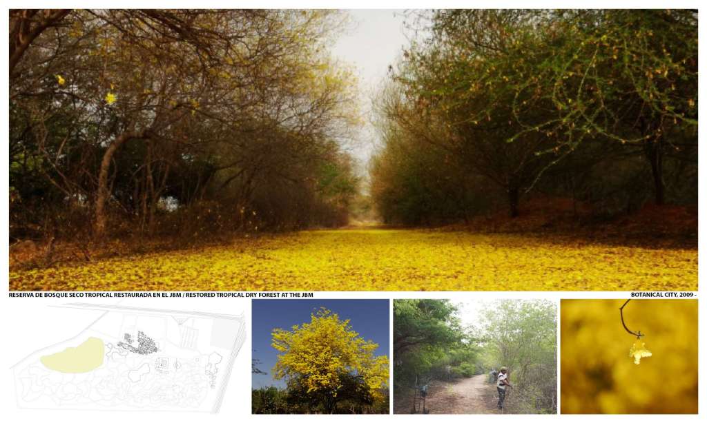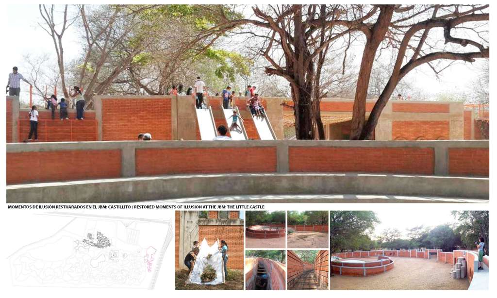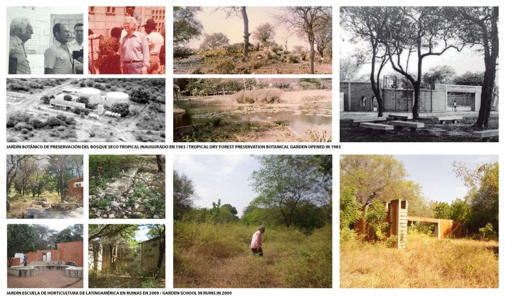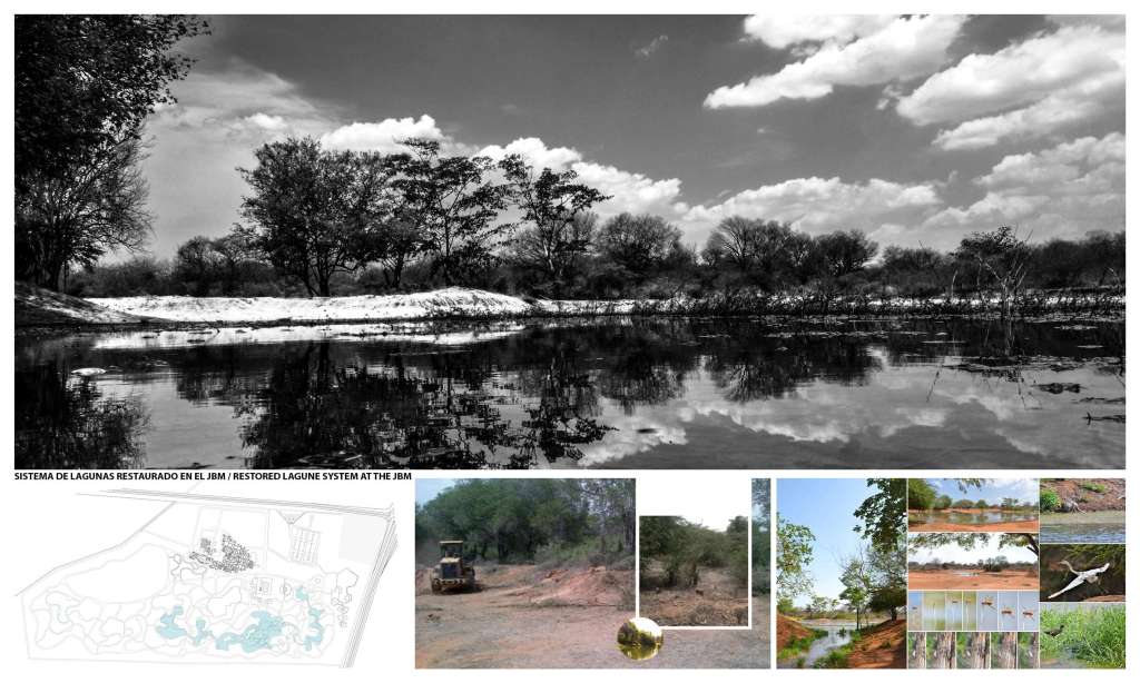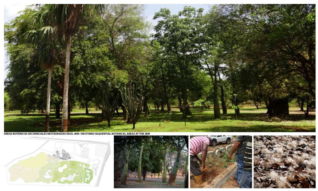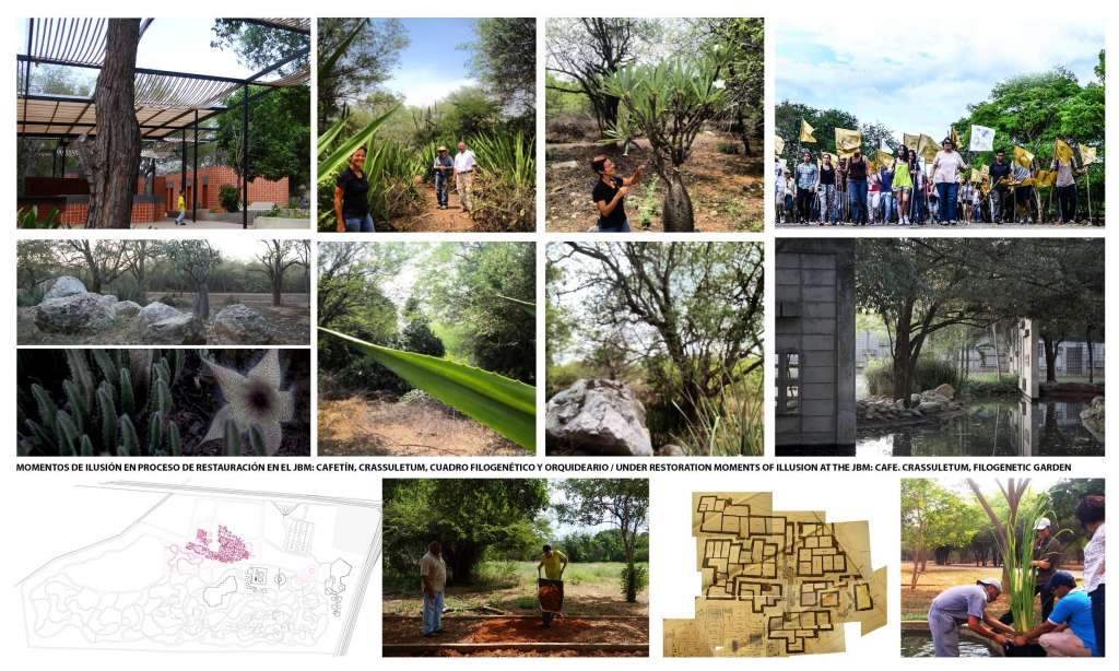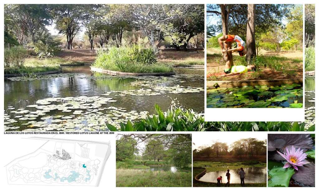 “Tras un breve período de esplendor, sobrevino una historia de inestables permanencias, una secuencia de vicisitudes, efímeros goces y dramáticas transformaciones físicas, botánicas y programáticas (…) Luego de años de violencia institucional, abandono e incomprensión del valor del patrimonio natural, una decisión intempestiva gubernamental acabó por clausurar el jardín en 2011, queriendo convertirlo en parque de recreaciones acuáticas de dudosos beneficios estéticos y científicos, que atentan contra el patrimonio que el jardín representa”, momento en el que germina la inquietud que funda el interés y experiencia del trabajo de rescate emprendido por Urbina y Villalobos, reconocido en la XII Bienal Nacional de Arquitectura del 2017, que contempló tanto la restauración patrimonial del JBM como la propuesta del Master Plan de la Avenida 5 de Julio que extrapola y aplica criterios aprendidos durante la restauración.