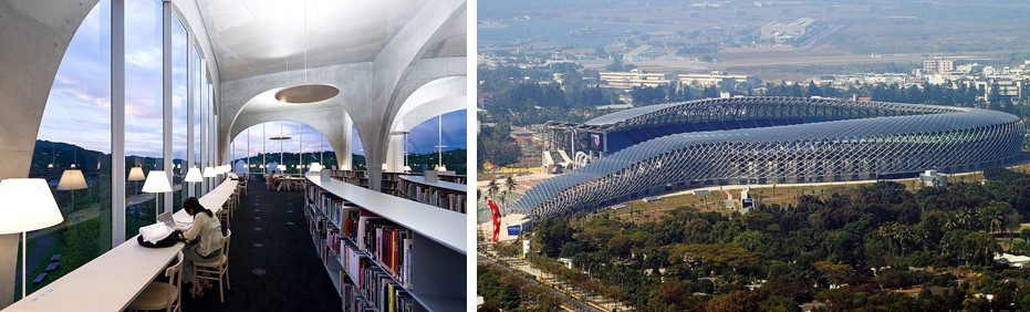 31. Biblioteca de la facultad de arte de la Universidad de Tama (https://www.archdaily.cl/cl/707037/biblioteca-de-la-facultad-de-arte-de-la-universidad-de-tama); y Architectuul. (https://architectuul.com/architecture/kaohsiung-stadium)