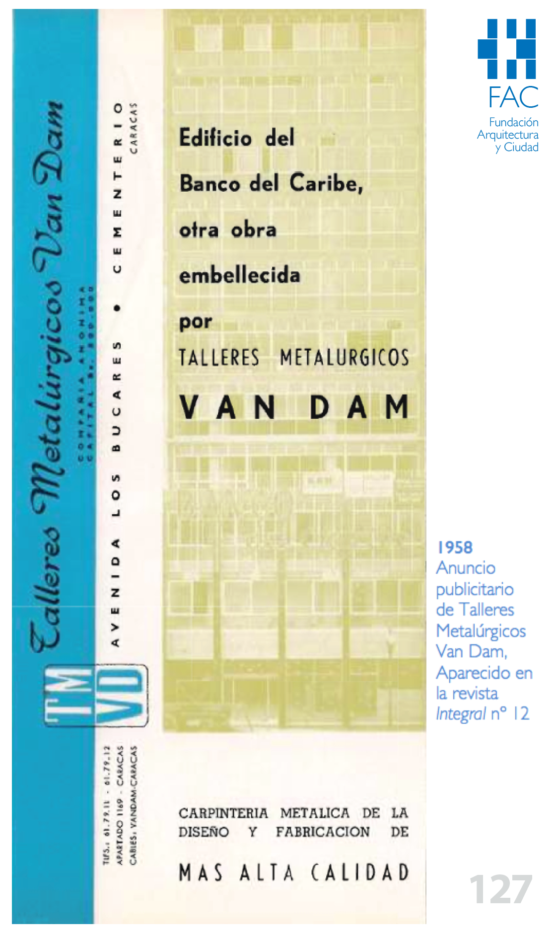 Toda la carpintería metálica del edificio fue realizada por los Talleres Metalúrgicos Van Dam, C.A.
