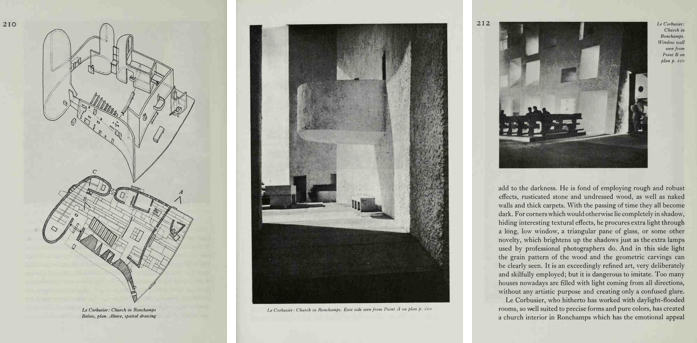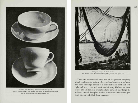 En la arquitectura orgánica es del todo imposible considerar el edificio como una cosa, sus accesorios y equipo como otra y su emplazamiento y entorno como otra más. El espíritu en el que son concebidos estos edificios ve todo esto como una cosa única. Todo ello debe ser cuidadosamente planificado en conformidad con su naturaleza. Todo debe convertirse en simples detalles del carácter e integridad del edificio. La iluminación, la calefacción y la ventilación se encuentran incorporadas (o excluidas). Incluso las propias sillas y mesas, los armarios y aun los instrumentos musicales -donde pueda llevarse a la práctica- forman parte del edificio en sí, jamás son accesorios metidos simplemente dentro de él…