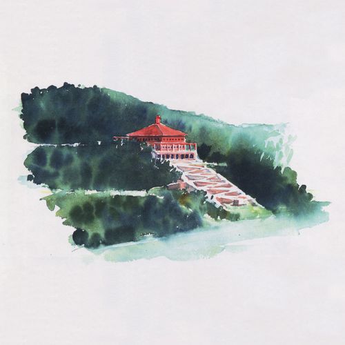 17. Carlo Scarpa. Pabellón de Venezuela. Venecia, 1953-1956. Dibujo original de Scarpa de la volumetría del pabellón.