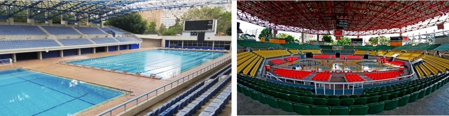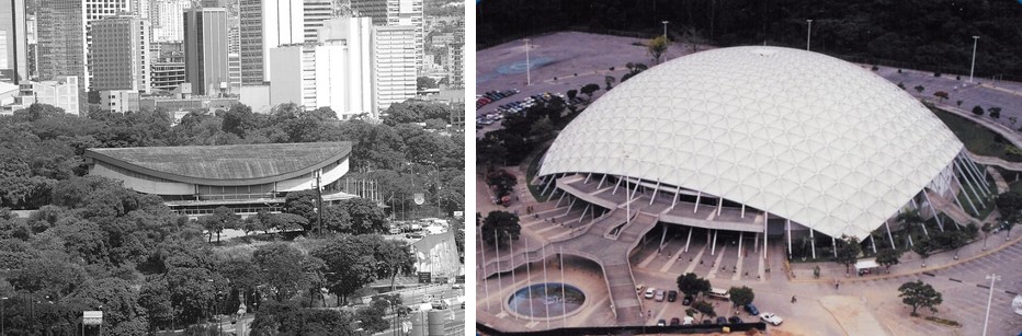 4. Dos de las edificaciones existentes que se reacondicionaron y adaptaron para albergar los IX Juegos Panamericanos. El Gimnasio Cubierto de la UCV (izquierda) y el Poliedro de Caracas (derecha).