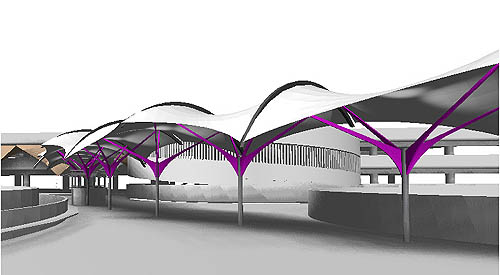 9. Propuesta para el Intercambiador Modal de Transporte de la Zona Rental Norte Plaza Venezuela, fachada. Arq. Oswaldo Molina Mirabal ganador del concurso.