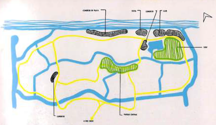 La solución, concebida como una “unidad vecinal”, preveía una capacidad para 1.000 familias y estaba estructurada por dos tipos de vías: 1) las terrestres que contemplan a su vez otras tres variantes en función del área a servir sea esta la conexión con el pueblo de Río Chico, la distribución a los diferentes grupos de parcelas o la alimentación a las parcelas propiamente dichas; y 2) las acuáticas formadas “por canales de agua, los cuales están alimentados por el Rio Chico en su extremo este y por el Río San José en el extremo Oeste, así como también por el mar Caribe con el influjo de marea que varía en promedio aproximadamente cuarenta centímetros cada trece horas”, entre las que se encuentran a su vez dos tipos: las A que tienen un ancho de 60 metros y 5 de profundidad (que se comunican al Oeste con el dique marginal derecho del Río Tuy y al extremo este con el Caño Copey), y los B de 30 metros de ancho y 2,50 de profundidad distribuidos por toda la urbanización y que sirven a todas las parcelas.