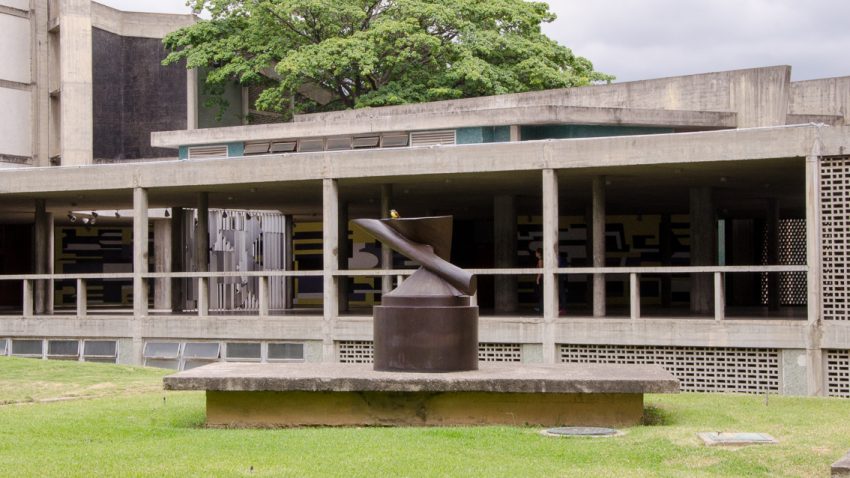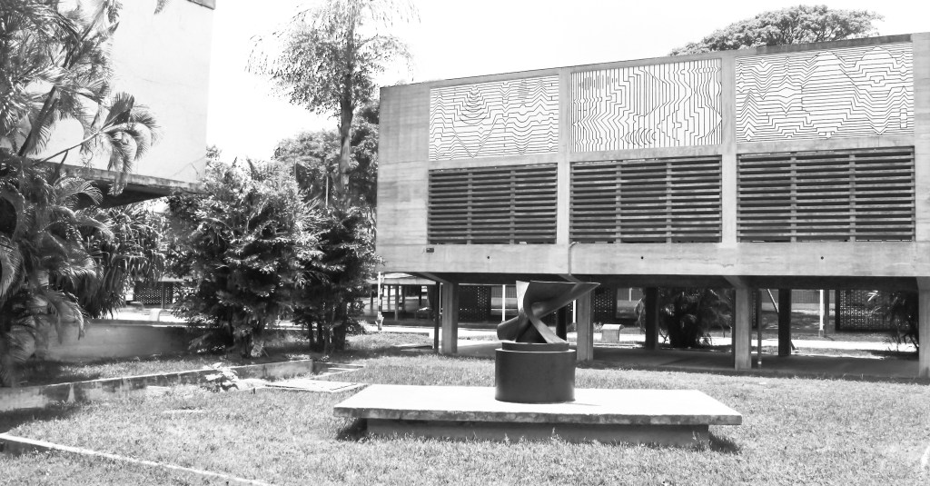 12. Ciudad Universitaria de Caracas. Patrimonio Mundial (https://patrimoniocuc.wordpress.com/2019/10/05/dinamismo-en-30-grados-antoine-pevsner/); IAM Venezuela (https://iamvenezuela.org/2018/11/el-dinamismo-en-30-grados-el-antoine-pevsner-de-la-ucv/); y Wikipedia (https://es.m.wikipedia.org/wiki/Archivo:UCV_2015-071_Antoine_Pevsner_1953,_Projection_Dynamique_a_30_de_Gres_o_El_Dinamismo_en_30_grados.JPG)